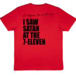 Look fashionable and be the envy of your friends in this I SAW SATAN AT THE 7-ELEVEN t shirt… screen printed in South London by Motor Threads, fine purveyors of rock n roll and horror fashions.